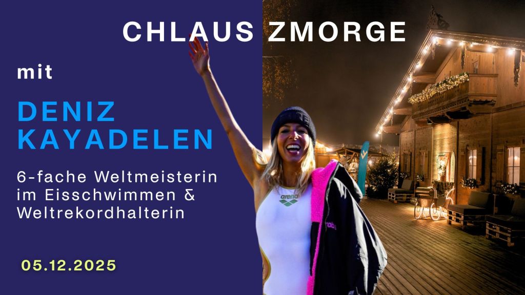Der Chlaus Zmorge ist eine langjährige Tradition, die uns jedes Jahr in der Vorweihnachtszeit zusammenbringt. Dieser besondere Anlass bietet nicht nur die Gelegenheit, sich bei einem gemütlichen Frühstück auszutauschen, sondern auch inspirierende Persönlichkeiten kennenzulernen, die uns mit ihren Geschichten und Erfahrungen bereichern. Wir freuen uns sehr, dass dieses Jahr die sechsfache Weltmeisterin im Eisschwimmen, Guinness-Weltrekordhalterin, Wirtschaftspsychologin Bestseller-Authorin Deniz Kayadelen dabei ist.